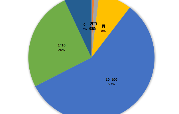 另從我從關鍵詞數據中整理了所有關鍵詞的搜索量情況,并制作了占比圖。可以從圖中看出,搜索量在10~100之間的詞,是主要的獲得排名的詞。
