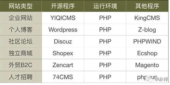 我們要做的是一個企業網站,還是一個網店系統呢?我們是要做一個論壇,還是還是要做一個人才招聘網站呢?我們只要想清楚我們所有這個網站它屬于什么類型?然后呢,現在在互聯網上在市場上針對每一個比較成熟的類型的網站,都已經有非常完備的開源程序。